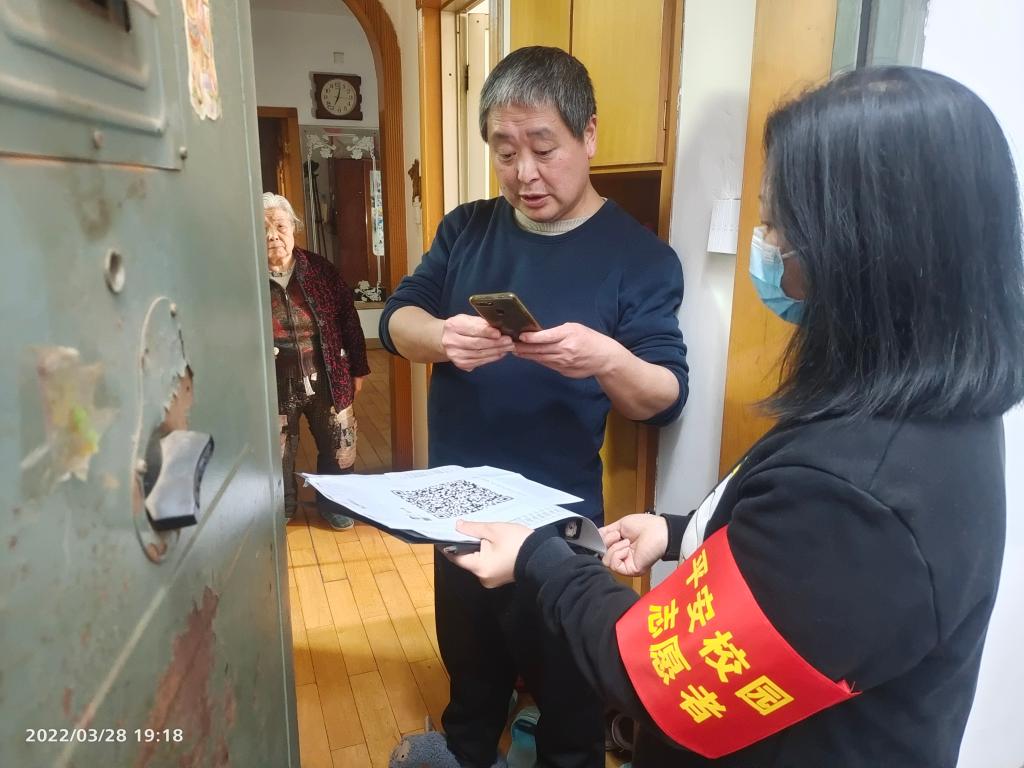 家属楼大都是七层的老旧楼,没有电梯。同志们两人一组,戴着“平安校园”红袖章,拿着摸排登记本,一户户敲门,询问是否有湖大、雅礼接触史,查看健康码和行程码,登记核酸检测、疫苗接种情况,邀请加入每栋楼的业主群……