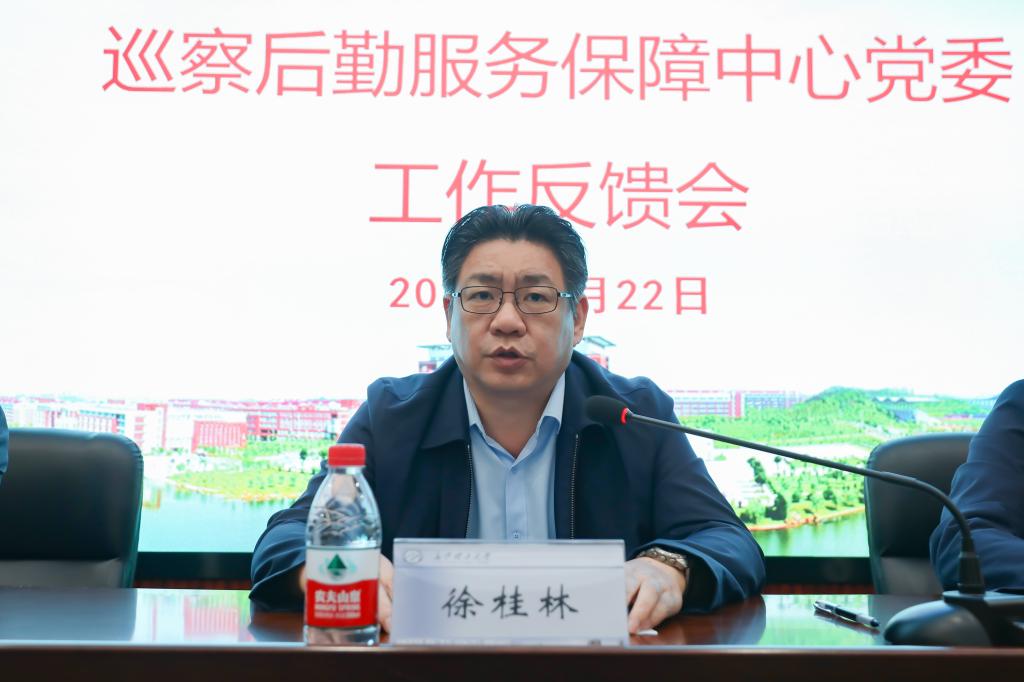 根据学校巡察工作领导小组统一部署,5月22日下午,学校党委第三轮校内巡察第三巡察组巡察后勤服务保障中心党委工作反馈会在云塘校区图书馆B102报告厅召开。校纪委书记、省监委驻威廉体育williamhill监察专员、党委巡察工作领导小组副组长徐桂林出席反馈会并讲话,党委第三巡察组组长易贵民分别向后勤服务保障中心党委领导班子和全体教职工通报了巡察反馈意见。校纪委副书记、监察处处长方文彬,巡察组组长、副组长,后勤中心党政班子全体成员、各二级部门副职以上负责人及管理骨干、全体党员及入党积极分子、职工代表大会全体代表参加反馈会。后勤中心主任孔蔚湘主持会议。