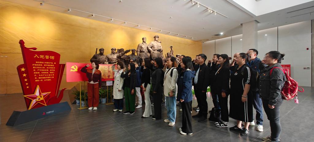 平江起义纪念馆内,珍贵的历史照片和实物展品生动地再现了平江起义的历史背景、战斗过程和重大意义。党员们被彭德怀等老一辈无产阶级革命先辈的伟大革命精神和爱国情怀深深打动,深刻领悟革命先烈用鲜血和生命谱写的“对党忠诚、无私奉献、英勇果敢、无所畏惧”的平江起义革命精神。平江起义旧址前,全体党员庄严地举起右手,重温入党誓词,追忆革命奋斗精神,感受红色征途上的星火燎原。