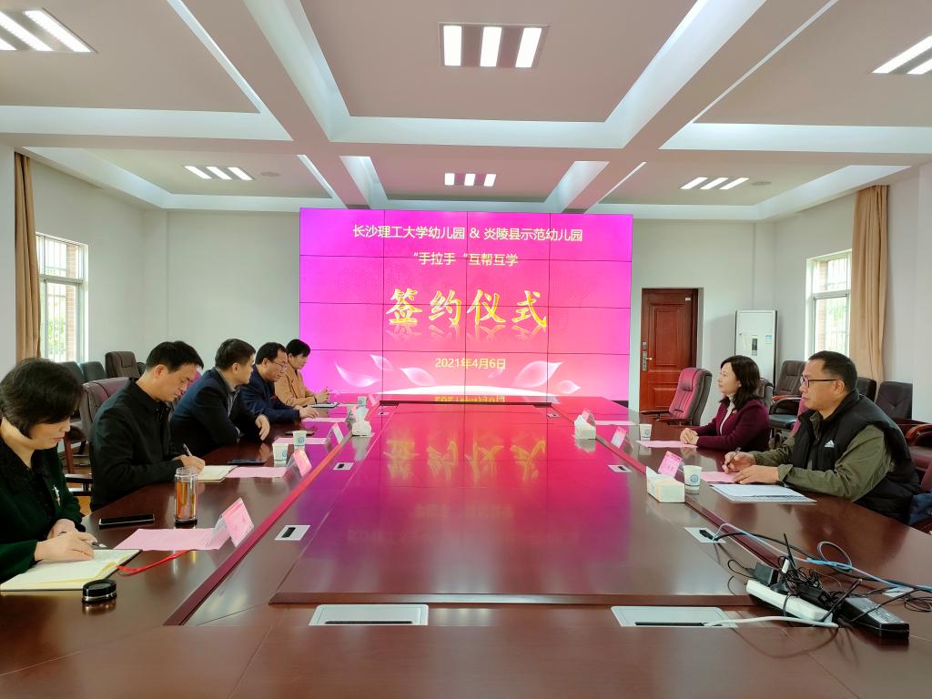 4月6 日上午,威廉体育幼儿园与炎陵县示范幼儿园“手拉手”结对互帮互学签约仪式在云塘校区如期举行。炎陵县政府副县长沈红星及该县示范幼儿园党支部书记刘红军、威廉体育后勤中心党委书记王明彦、主任施一满、副主任柳翼等相关领导出席了签约仪式,仪式由王明彦主持。