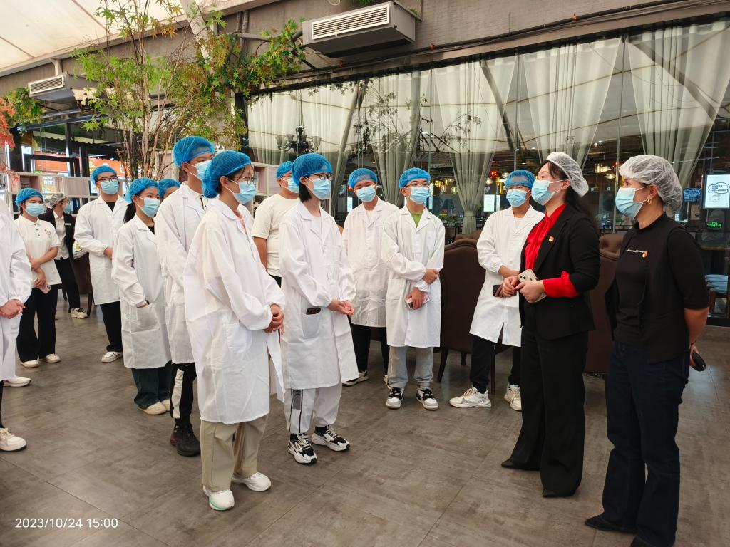 为了让同学们深入了解餐饮保障服务全过程,搭建校园食品安全监督平台,提升学校食堂服务质量,2023年10月24日下午2点,后勤中心餐饮服务部联合校团委举办了“走进食堂——粮辰美景,不负食光”主题活动,来自校团委生活权益部及各学院的34名学生代表来到甘饴园食堂实地参观。