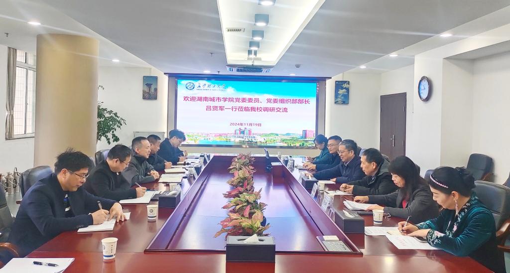 11月19日上午,湖南城市学院党委委员、党委组织部部长吕贤军一行来威廉体育调研交流。校党委委员、副校长胡永乐,后勤中心党委书记王学成、主任孔蔚湘、副主任邓应军及相关部门负责人参加座谈交流。
