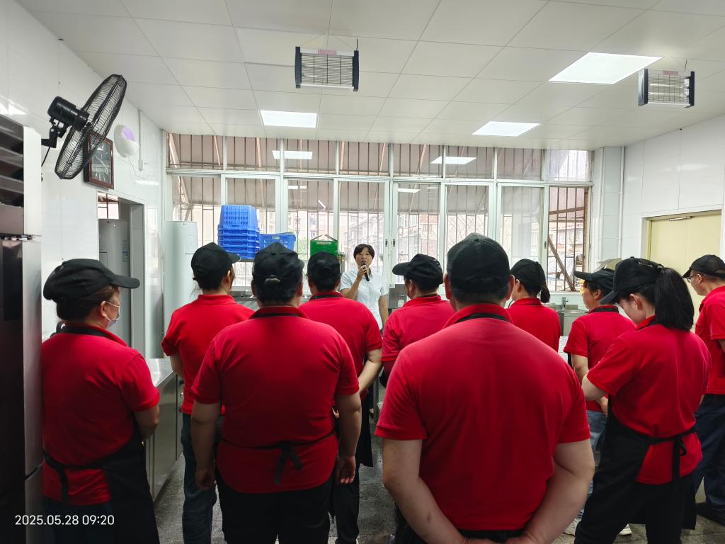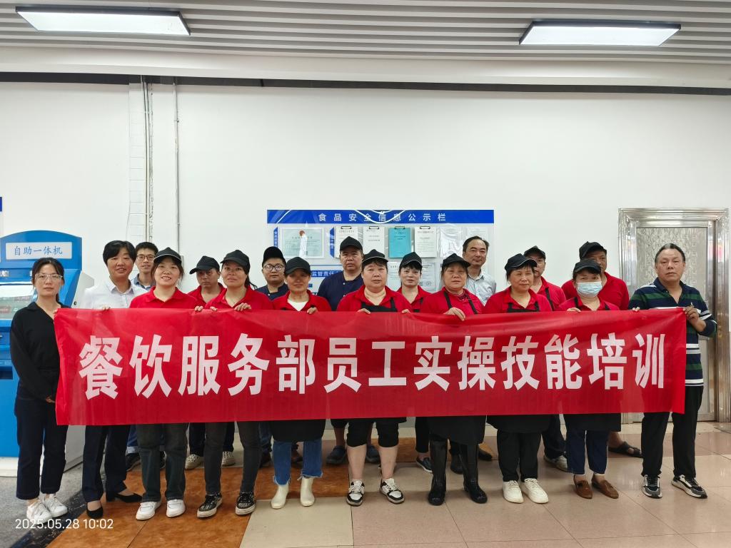 5月28日,餐饮服务部分别在西苑食堂、甘饴园食堂开展员工实操技能培训。特邀原部门主任李波担任主讲,部门管理人员及自管食堂一线员工共计80余人参训。