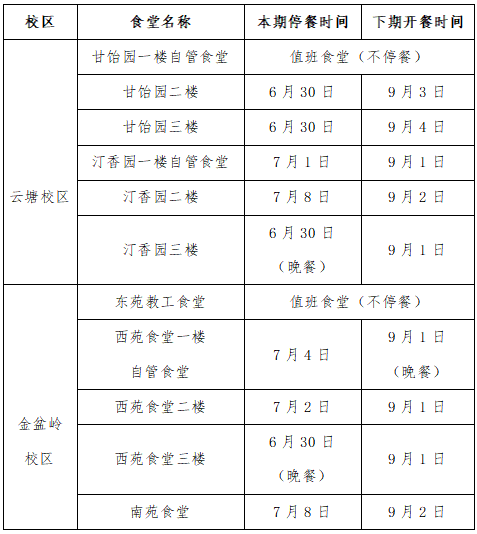 关于学校食堂暑期停、开餐安排的通知