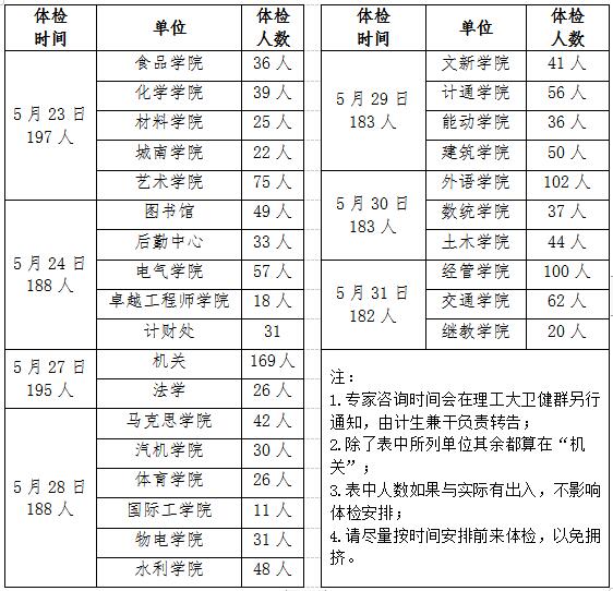 1.体检时间:2024年5月23日—2024年5月31日8:00—11:50、14:00-17:00,共7个工作日(周六、日不体检);