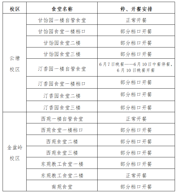 根据学校端午节放假安排,现将假期各食堂营业安排通知如下:
