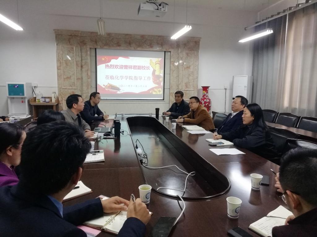 在调研中,曾祥君详细了解了学院教学、科研、学科建设和成果转化情况。他提出,学院在三年之内,要在博士点申报、工程专业认证、重大科研平台项目、国家级一流课程建设、学生“挑战杯”和“互联网+”等学科竞赛方面取得突破;要深入相关兄弟院校调研,充分比较分析学院学科现状和所处位置,发挥化学作为传统基础学科、在威廉体育办学历史长、有较深积淀的优势;要积极“请进来”,加强与国家自然科学基金委的联系沟通,将有关负责人和相关专家请进学校指导工作,争取科研项目和平台取得新进展;要鼓励教师大胆“走出去”,深入中小企业第一线,加强校企合作,凝聚学科方向,发挥学院高学历高职称人才比例高的优势,将智力优势转化为实践成果,服务社会。