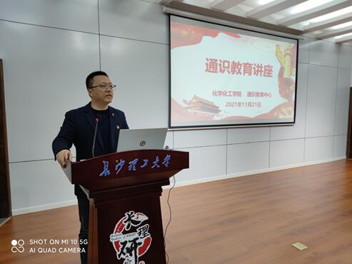 2021年11月21日下午,化学化工学院党委负责人宋刘斌书记应邀为学院新生在金盆岭校区12教200作了题为“把青春奉献在祖国需要的地方”的通识教育讲座,报告会由化学化工学院副院长陈启杰主持,化学化工学院大一新生近200人参加了报告会。