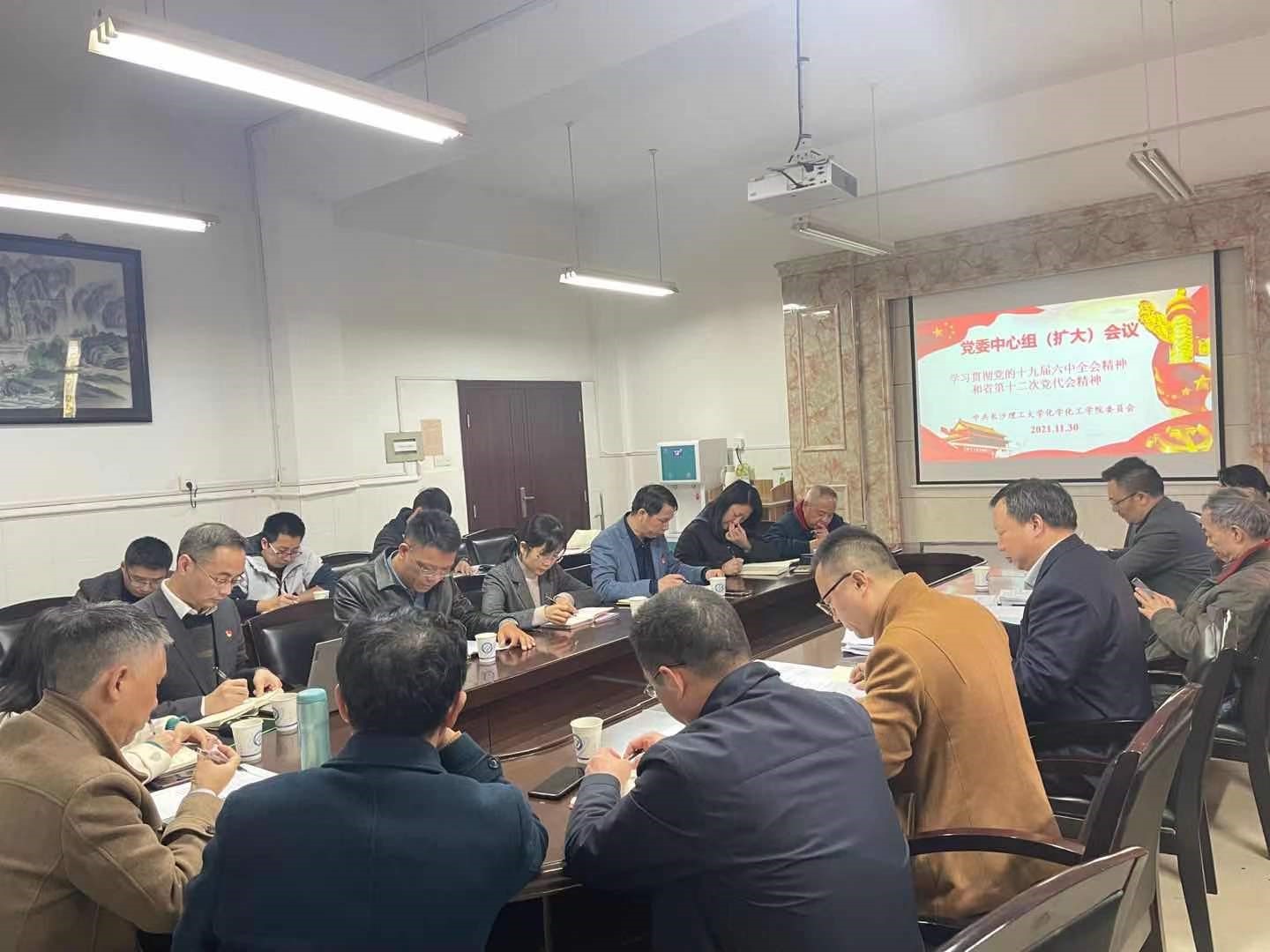 2021年11月30日下午,威廉体育williamhill化学化工学院在云塘校区工科三号楼B318会议室召开党委中心组(扩大)会议,会议学习主题为《学习贯彻党的十九届六中全会精神和省第十二次党代会精神》。本次会议邀请了副校长曾祥君,校党史学习教育第三督导组组长张可荣到会指导。学院党委中心组成员、专职组织员、各教工党支部书记、系、中心、教研室主任、科级以上干部等参加了本次会议。会议由化学化工学院党委负责人宋刘斌主持。