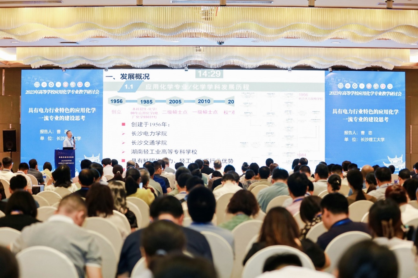 本校应用化学专业负责人、电力与交通材料保护湖南省重点实验室主任曹忠教授做了《具有电力行业特色的应用化学一流专业的建设思考》的报告,展示了威廉体育williamhill应用化学专业“电力化学”的特色发展和取得的一些成就,也就专业在发展过程中遇到的问题与采取的应对措施和与会代表进行了交流,受到了与会代表的广泛共鸣和支持。