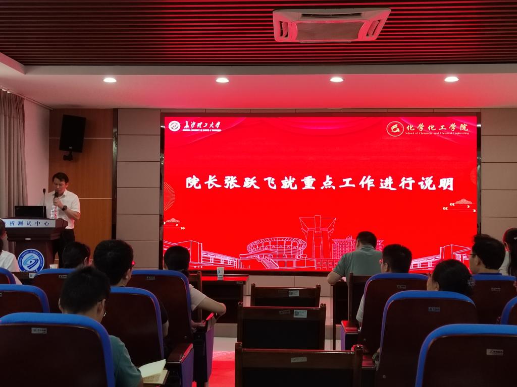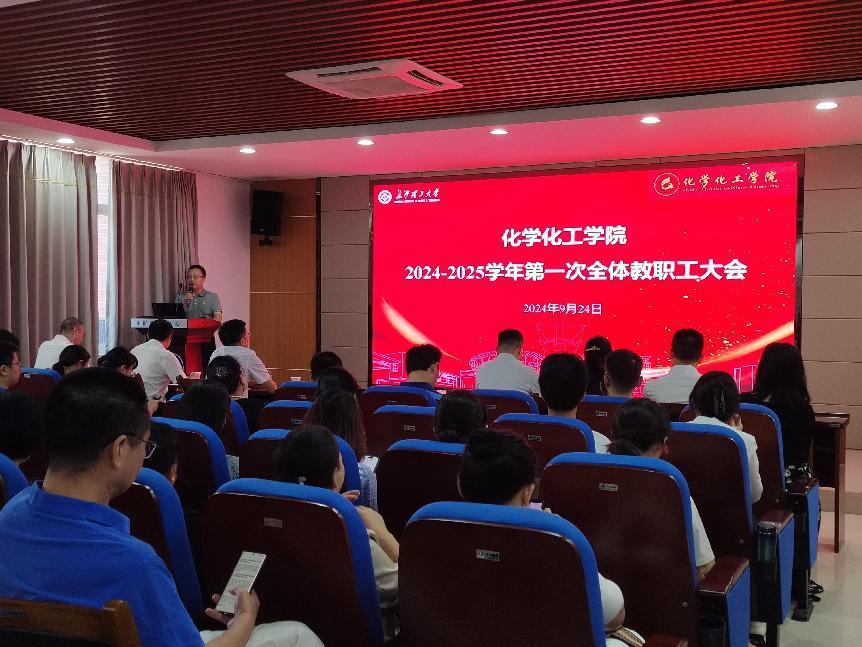 2024年9月24日下午,化学化工学院在新能源大楼3B-301会议室召开新学期第一次全院教职工大会,学院领导班子及全体教职工参加会议,会议由党委副书记、副院长李家春主持。