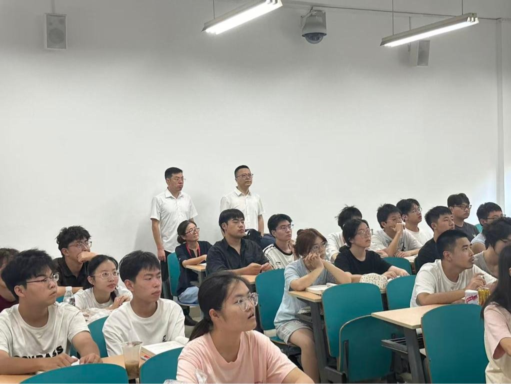 2025年9月8日上午,化学与医药工程学院领导班子成员宋刘斌、张跃飞、李家春、喻林萍、陈启杰、以及教务管理人员、辅导员共11人,分两组对综合教学楼和工三教学楼1-2节课程开展“推门即查”专项行动。学院领导班子检查了学院任课老师出勤、备课、授课和学生返校及到课率、听课等情况。教学检查组随机听取了《化工热力学》《水质净化工程》《有机化学》等课程。从检查情况看,所有任课教师均提前10分钟到岗,教学资料齐备,PPT、板书与工程案例结合紧密;学生平均到课率达98%以上,课堂互动积极,全院教学秩序井然。
