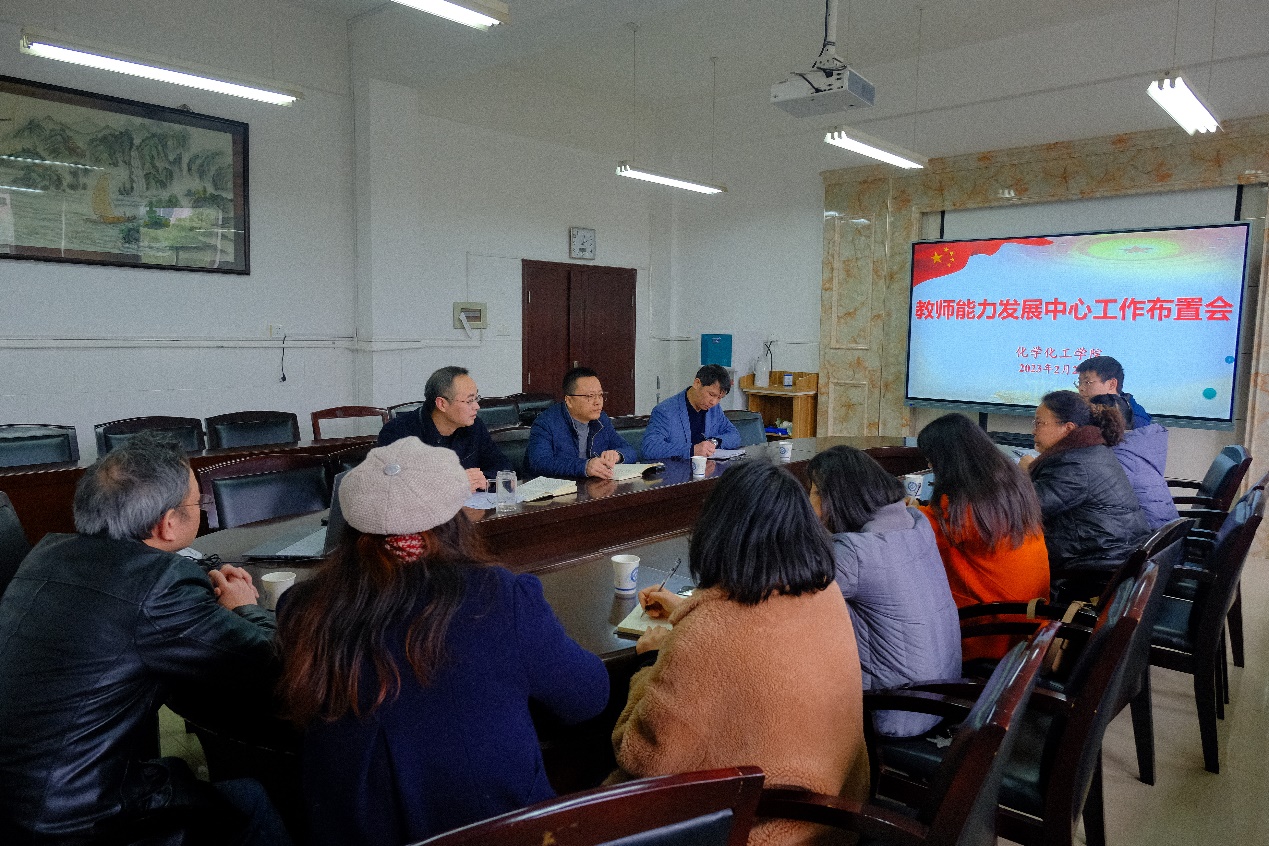 为促进青年教师快速成长,提升学院青年教师的教学能力、教学竞赛水平和学生学科竞赛水平, 2023年2月28日下午,学院在工三B318召开了化学化工学院教师能力发展中心工作布置会。学院党委书记宋刘斌、副院长(主持工作)张跃飞、副院长陈启杰、教师能力发展中心新老成员参加会议,会议由学院副院长陈启杰主持。