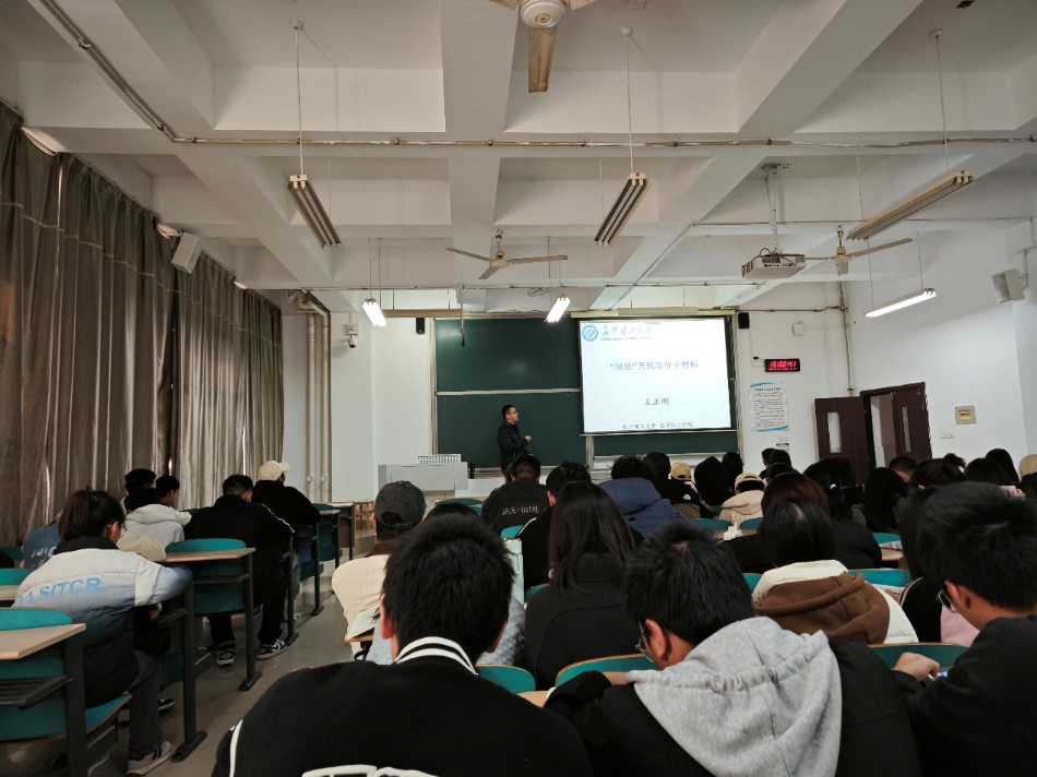 2023年12月5日下午3点,化学化工学院王正刚博士在云工三B218开展了题为“绿色天然高分子材料”的通识教育学术讲座报告,2022级学院本科生及其他年级同学150余人聆听了讲座。