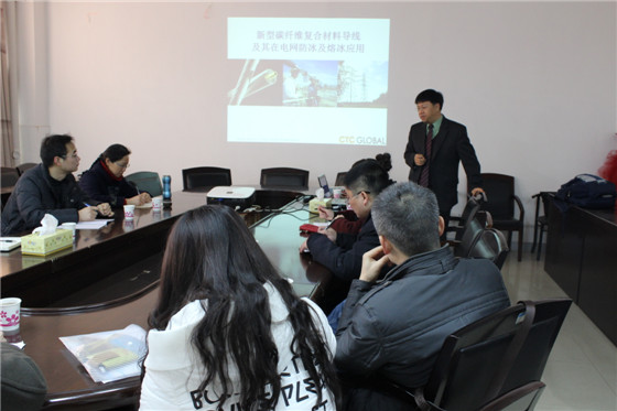 仪式结束后,黄建中作了题为“新型碳纤维复合材料导线及其在电网防冰及熔冰应用”的学术报告。黄博士从导线技术的发展历程、芯棒复合材料技术创新及成熟、碳纤维导线的优越性能及应用、冰区电网及碳纤维导线熔冰等方面深入浅出地讲解了新型碳纤维复合材料导线在电网建设中的研究发展与应用前景。黄博士在报告中列举了一系列国际电网应用实例,并结合自己的实践经验详细讲解了应如何解决电网方面的关键技术,并特别针对特殊环境下电网防冰及熔冰问题展开了详细的讲解。最后,黄博士指出了目前碳纤维复合材料导线在电网领域大规模应用面临的问题和发展趋势,并展望了未来的发展方向。