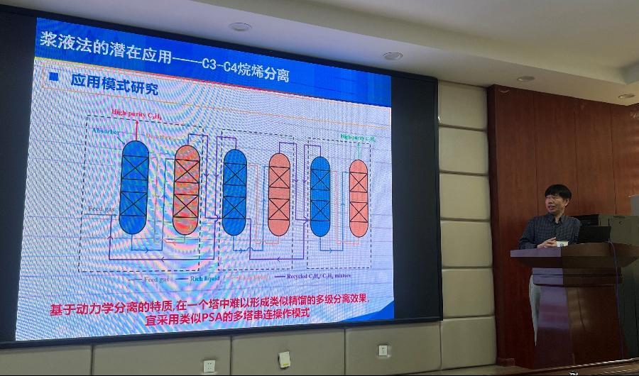 陈光进教授从MOF材料用于气体分离面临的挑战出发,提出了多孔浆液法——吸收吸附耦合分离技术,详细介绍了液膜分离技术的原理、特点、优势以及应用前景,并阐述了液膜分离技术在脱碳、CH4/H2、CH4/N2、C2H6等体系的潜在应用及预期能耗。报告结束后,陈光进教授与师生开展了热烈的讨论,陈教授鞭辟入里地回答了老师们的问题,现场气氛活跃。陈光进教授的学术讲座不仅拓宽了师生们的研究视野,也对威廉体育化工、化学、材料科学等相关领域的学术研究与发展起了积极的推动作用。