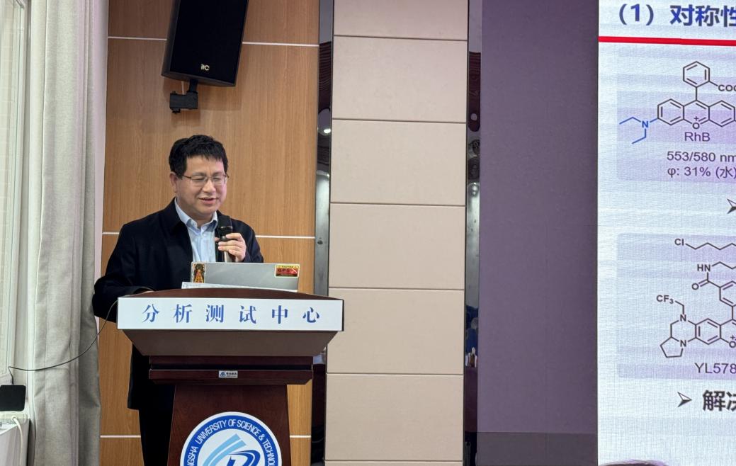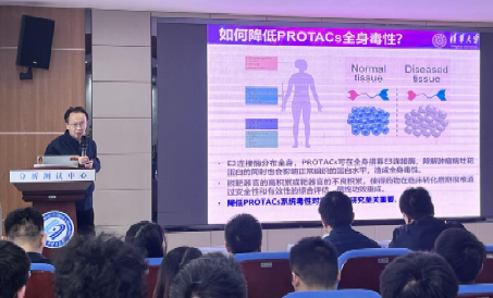 报告会上,李景虹院士首先为我们带来了“靶向蛋白降解技术PROTAC的生物分析与医学应用”前沿讲座,PROTAC技术在解决重大疾病中相关“不可成药”蛋白质降解与功能抑制具有显著优点。李院士针对目前PROTAC技术存在的系统毒性问题,创新性地提出ClickRNA-PROTAC策略与X-射线放疗激活策略,实现了PROTAC药物在肿瘤部位选择性激活与蛋白质降解,为PROTAC技术落地临床应用提供重要力量。随后,袁林教授与吴海竞研究员分别针对“有机荧光探针结构调控及其生物医学应用探索”与“人工智能在皮肤健康领域的应用及挑战”进行了精彩报告。会后,专家们参观了细胞化学湖南省重点实验室和化学化工学院分析测试中心,并对实验室和测试中心的规划与建设给予了宝贵建议。(图/文 杨乐,一审/谌委菊,二审 /陈启杰,三审/张跃飞)