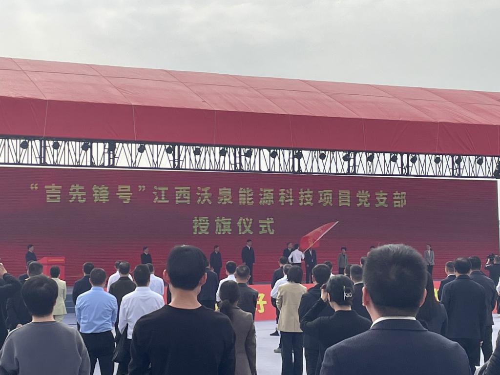 4月8日上午,团队前往吉安市新干县参加“江西沃泉能源科技有限公司锂电池回收利用及正负极材料生产项目”的开工仪式。吉安市委市政府将此项目的启动作为2025年一季度全市重大工业项目建设和招大引强“点将赛”活动的开幕仪式。在活动现场,吉安市委书记罗文江亲自为“吉先锋号”江西沃泉能源科技项目党支部授旗。研究生向优涛表示,在看到挥旗的那一刻,深刻感受到了青年学子与地方工业发展同步前行的责任,将会把在学校学到的知识转化为推动技术实际应用的动力。