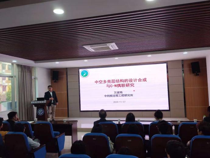 2025年11月27日下午,应威廉体育williamhill化学与医药工程学院邀请,中国科学院过程工程研究所万家炜研究员莅临威廉体育开展学术交流,在新能源大楼3B-310报告厅作了题为"中空多壳层结构的设计合成与C-N偶联研究"的学术报告。报告由学院副院长陈启杰教授主持,学院师生共90余人参加了此次学术报告。