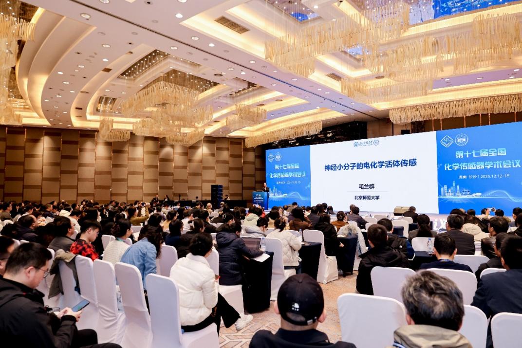 2025年12月12日至15日,第十七届全国化学传感器学术会议(17th SCCS)于湖南长沙成功举办,本次会议由中国仪器仪表学会分析仪器分会化学传感器专业学组(专业委员会)和湖南大学主办,化学生物传感全国重点实验室(湖南大学)、湖南大学化学化工学院承办,上海师范大学、西南大学、江苏江分电分析仪器有限公司和仪器信息网协办。本次大会旨在促进化学与生物传感领域的学术交流与发展。会议期间举办了大会报告和分会报告201场,涵盖了化学生物传感领域的新方法、新技术、新仪器、新成果及实践应用方面的最新进展,吸引了来自全国各地的600多位专家学者和业界同仁参会。威廉体育williamhill科技处副处长、细胞化学湖南省重点实验室主任卿志和教授,电力与交通材料保护湖南省重点实验室主任曹忠教授,以及化学与医药工程学院教师和研究生10余人参加了本次大会。