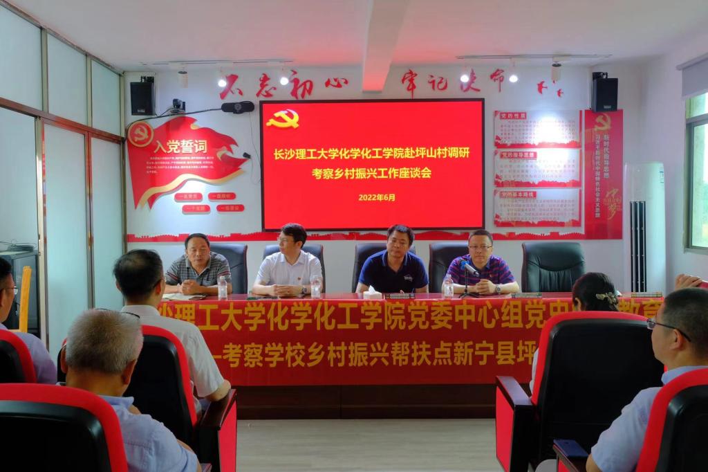 为深入学习习近平新时代中国特色社会主义思想和习近平总书记关于实施乡村振兴战略重要论述精神,创新理论学习形式,切实服务区域经济社会建设,积极助力乡村振兴,2022年6月16日,化学学院党委理论学习中心组赴新宁县坪山村调研乡村振兴工作。学院党委书记宋刘斌带领中心组学习成员深入田间地头,采取“现场学习+调研+慰问+学习研讨”的形式进行了深入的学习交流,把“课堂”设在乡村振兴、美丽乡村建设第一线。学院中心组全体成员,威廉体育williamhill乡村振兴驻坪山村工作队队长吴振华,队员曾宪禄、刘军,坪山村村委会主任蒋新华等村“两委”干部及村民代表参加此次学习活动。