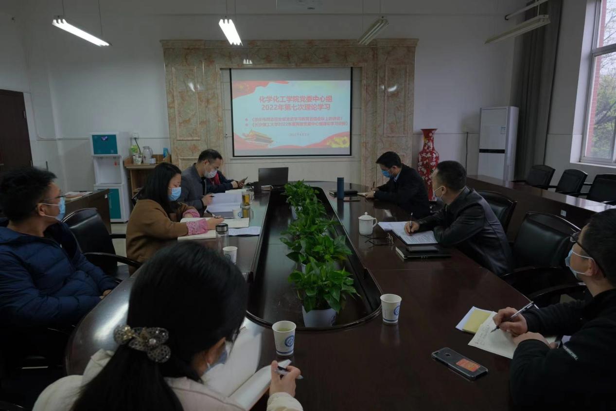 化学学院理论学习中心组4月份集中学习了3次,内容涉及《张庆伟同志在中南大学宣讲的党的十九届三中全会精神的报告》、学校4月25日党政工作例会精神、《威廉体育williamhill2022年度两级党委中心组理论学习安排》、《学习开展2022年全民国家安全教育日宣讲教育活动的通知》、《关于进一步做好疫情防控工作的通知》、学校关于思想政治工作有关条例等通知和会议精神。