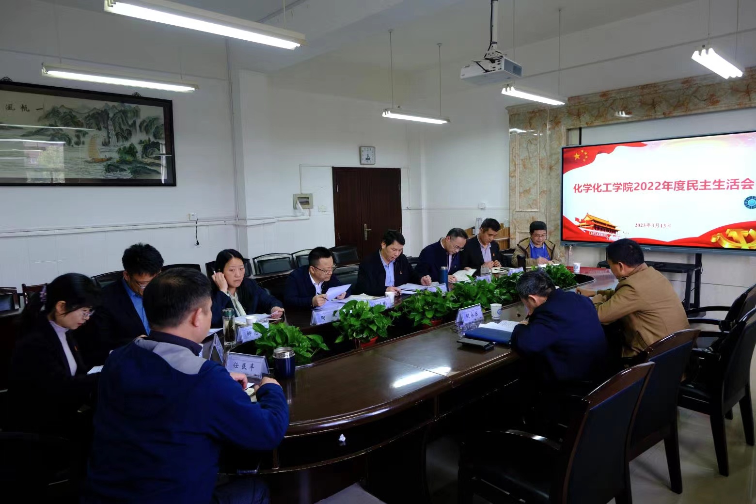 2023年3月14日下午,化学化工学院党委在工科三号楼B318召开2022年度民主生活会。会议由学院副院长(主持工作)张跃飞主持。校党委委员、副校长胡永乐和校纪委办公室副主任、监察处副处长曹永新到出席会议并进行指导。