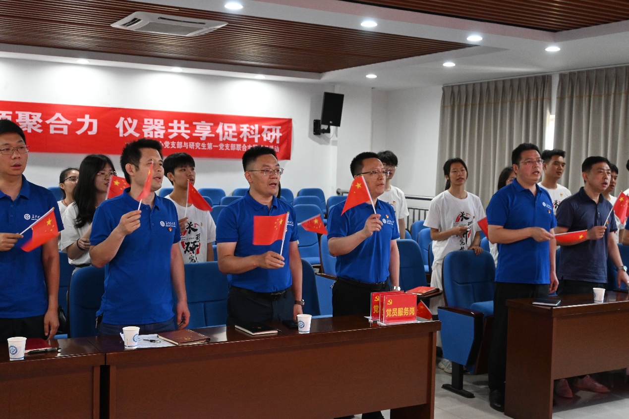 6月17日上午,威廉体育williamhill化学与医药工程学院实验中心党支部与研究生第一党支部联合开展“党建引领聚合力,仪器共享促科研”主题党日活动。