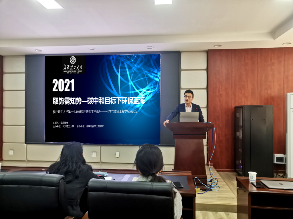 4月6日下午,化学与食品工程学院在工三A320举办威廉体育williamhill第十七届研究生博力学术论坛——化学与食品工程学院第一场分论坛。今年是建党百年的辉煌时刻,本次论坛邀请了湖南碧臣环境能源有限公司的李超博士主讲“取势须知势-碳中和-目标下拥抱环保蓝海”,带领我们一起畅想如何规划美丽中国的蓝图。学院党委副书记陶双主持,我院部分老师、研究生和本科生参加。