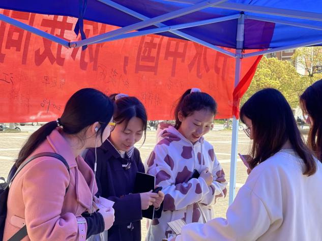 “让我们携起手来,自觉爱水、节水、护水,践行做生态文明的传播者、行动者、守护者,为建设天蓝、地绿、水净的美丽中国而共同奋斗!”在3月22日水资源保护宣讲中,环工本科生党支部成员通过世界水资源现状的分析,深入了解水资源对经济社会发展的重要性。宣讲活动结束时,参与人员纷纷在节水横幅上庄严地写下了 “贯彻新发展理念,节约利用水资源”的铮铮誓言。“创新高效利用方式、促进水资源可持续利用与绿色发展已刻不容缓!”陆娜激动地说道。