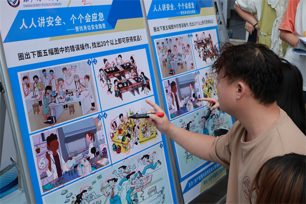 在工三东门前坪,竞赛以“实验室安全百错图”为核心内容,涵盖化学品存储、仪器设备使用、实验操作规范等安全隐患。参赛学生需在2分钟内找出图中20个以上错误,成功者可获奖励。这一环节既考验观察能力,又增强了安全意识。