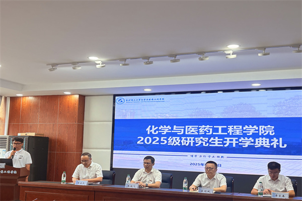 9月15日下午15:00,化学与医药工程学院2025级研究生新生开学典礼在工科三楼B319报告厅举行。学院党委书记宋刘斌、院长张跃飞、党委副书记兼副院长李家春、副院长陈启杰出席开学典礼,学工办主任江洁及2025级全体研究生新生齐聚一堂,共同见证这一新征程的开启。
