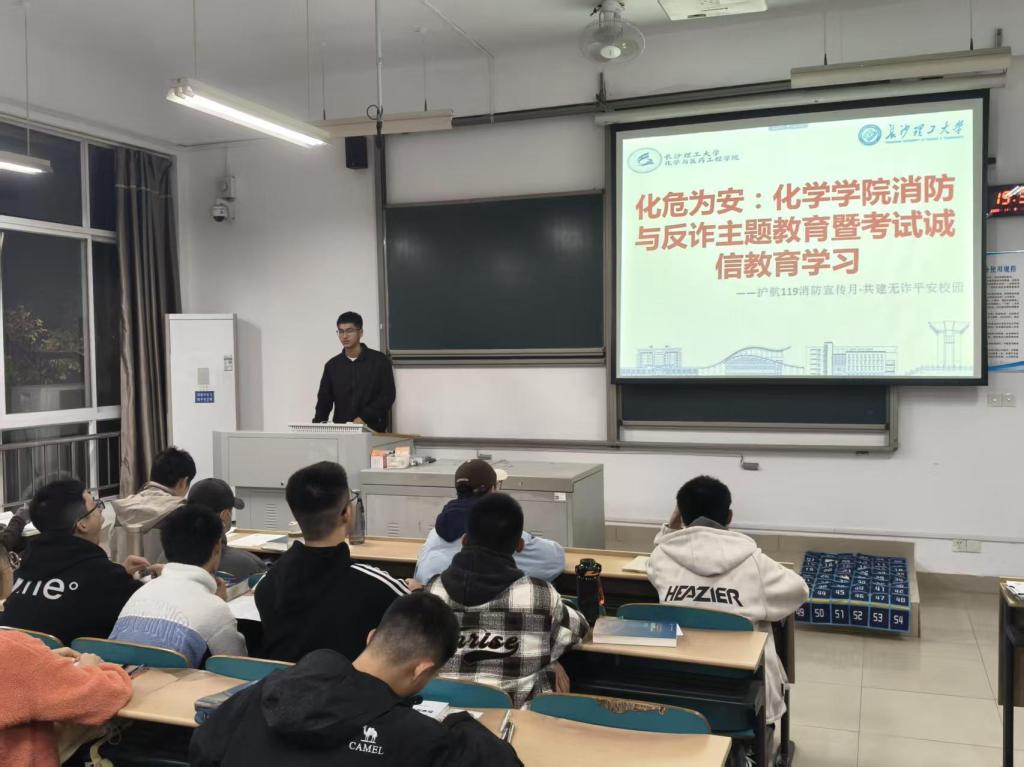 为扎实推进“119消防宣传月”活动,共建平安和谐校园,11月7日至12日,化学与医药工程学院面向全体学生,集中开展“消防安全与无诈校园”系列主题班会,实现四个年级安全教育100%全覆盖,切实提升学生安全防护技能与财产保护意识。