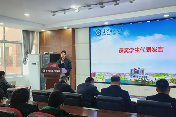 颁奖仪式后,2022级应用化学专业本科生罗王涛作为本科生获奖代表发言。她分享了自己平衡学业与科研、追求高效学习方法的心得,并感谢学院提供的优质平台和老师们的悉心指导。2023级化学工程与技术专业硕士研究生罗佐治作为研究生代表发言,他结合自身科研经历,讲述了在实验失败中坚持、在学术探索中创新的心路历程,并号召全体同学扎根专业、勇攀高峰。