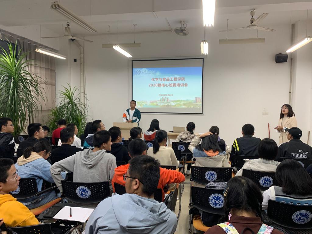 为进一步完善化学与食品工程学院20级新生的班级管理及养成教育、基本技能的培养,化学与食品工程学院于10月24日晚上在工科三号楼B210展开了20级第一次核心班委大会,会议由年级组副组长罗思主持,2020级本科生核心班委、部分班辅以及辅导员熊英参会。