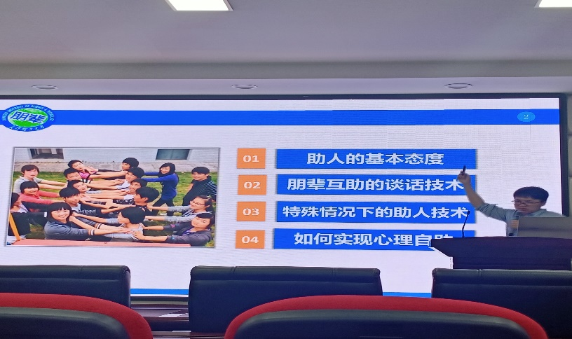 本次培训课培养朋辈互助员的助人技巧,丰富朋辈互助员专业知识。其重点在于提高朋辈互助员的工作积极性,构建化学化工学院美丽和谐的心理氛围。
