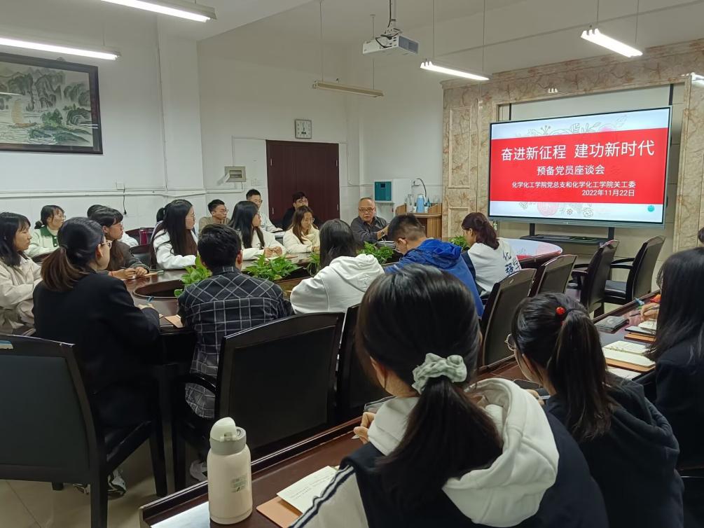 在党的二十大胜利召开之际,为及时了解新一批发展的预备党员思想动态。10月22日19点,化学化工学院关工委在云塘校区工科三号楼B318召开“奋进新征程,建功新时代”预备党员座谈会。学院关工委常务副主任邓豫以及新一批发展预备党员代表参加座谈。