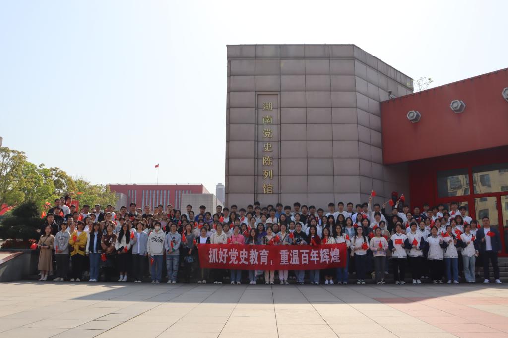 (全体学生党员在湖南党史陈列馆前合影)