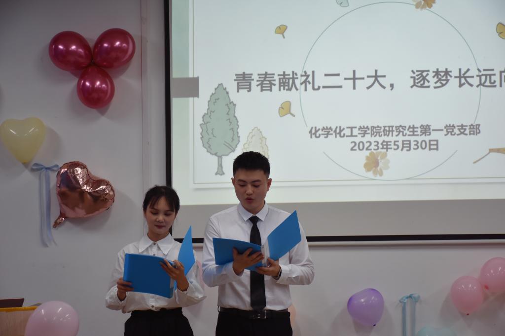 5月30日15点,化学化工学院研究生第一党支部以“青春献礼二十大,逐梦长远向未来”为主题的毕业生欢送会于工三B210举行。学院党委书记宋刘斌,党委副书记、副院长任艮丰,实验中心主任李江胜,党政办干事黄思雨,党建辅导员孙佳乐,与支部全体党员共聚一堂,倾听成长感悟,送上毕业祝福,共话未来。本次座谈会由支部书记肖懿、支部党员李依婷主持。
