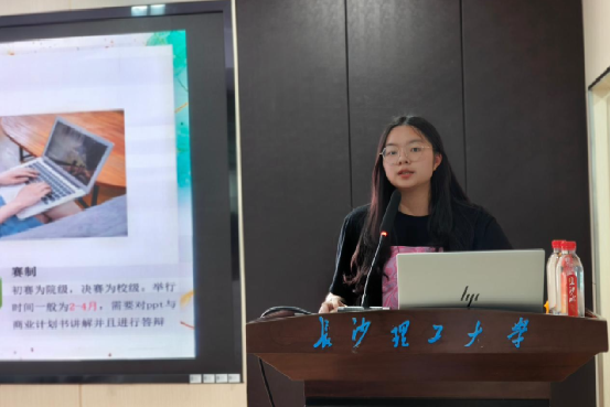 作为科创“引路人”,化苑科创平台竞赛部部长肖麟媛以“从入门到精通:大学生竞赛全攻略”为主题,为新生绘制了清晰的竞赛地图。她结合自身“挑战杯”“国创”等赛事参赛经验,重点解析了中国国际大学生创新大赛、“挑战杯”全国大学生课外学术科技作品竞赛、全国大学生化学实验创新设计大赛等三大核心赛事的赛制规则、备赛要点与评审逻辑,特别针对大一阶段推荐了校级"化学实验技能大赛"、省级"节能减排社会实践与科技竞赛"等"入门级"赛事。"早规划、早组队、早实践,才能在科创赛道抢占先机。"她的分享既有数据支撑又有案例佐证,赢得台下频频点头。