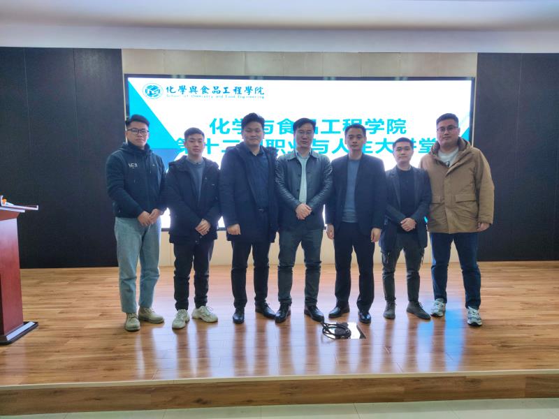 奋斗的青春最靓丽,唯有将个人生涯和祖国命运相联系,才能赋予个人的职业和人生更深刻的意义。12月15日下午,化学学院于工科三号楼A-201成功举办第十二期“职业与人生大讲堂”活动,活动特别邀请湖南圣湘生物科技股份有限公司执行总经理万东池先生主讲,圣湘生物湖南战略客户部总监刘东华、人资部汪超校友、国内营销中心王泽平校友及学院张航、王彪、熊英三位老师出席此次活动,就业辅导员兰贵辉主持,200余名学生主动报名参加。