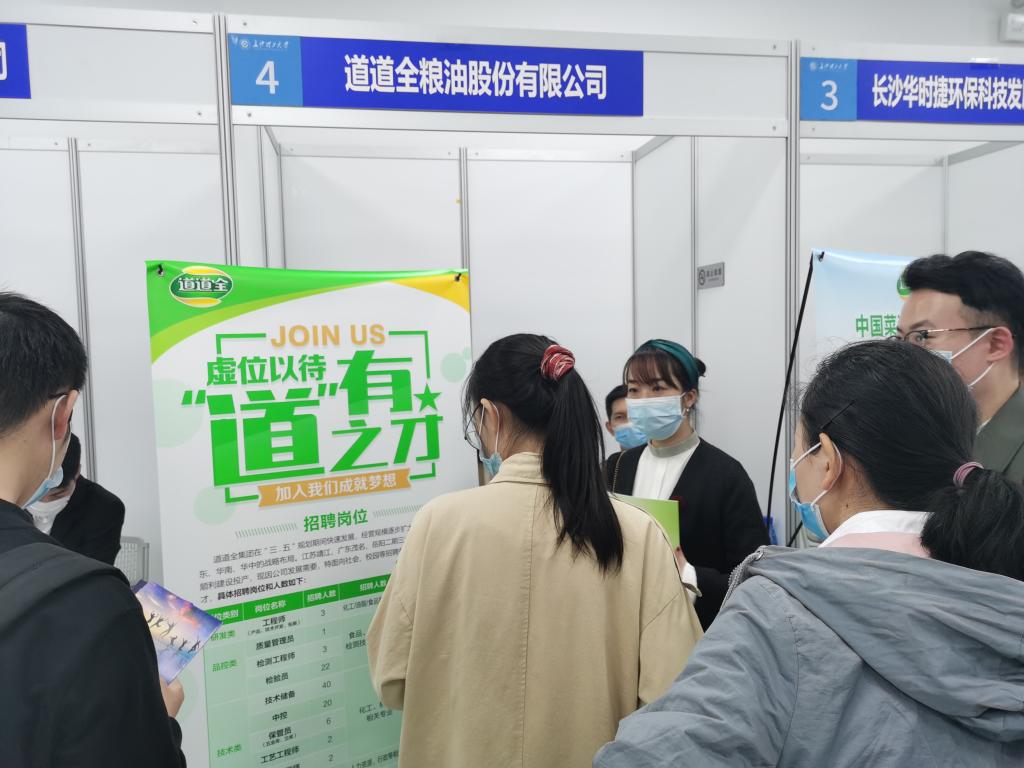 10月14日下午,化学学院在大学生创业园西侧“一站式服务大厅”举办2021届毕业生专场双选会,本次双选会共有恒安纸业、海天味业、万孚生物等省内外45家知名企业到校揽才,提供了400余个工作岗位,为毕业生提供了广泛的择业空间和高质量的就业机会。通过前期广泛宣传动员,此次双选会共吸引了2021届本科和硕士毕业生三百余人参加。