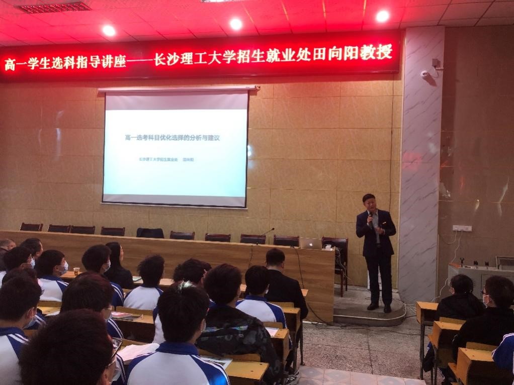 随后,曾祥君一行又来到隆回县第一中学,同该校校领导、班主任代表、学生代表展开座谈。座谈会上,曾祥君向隆回县第一中学近三年来为威廉体育williamhill输入了大批优质生源表示感谢,同时向师生们介绍了威廉体育williamhill的办学优势和特色。田向阳以《新高考改革背景下高中生如何选科》为题为师生们开展讲座,参会师生们表示收获颇丰,隆回县第一中学刘明彰副校长评价:“受益匪浅,茅塞顿开!”