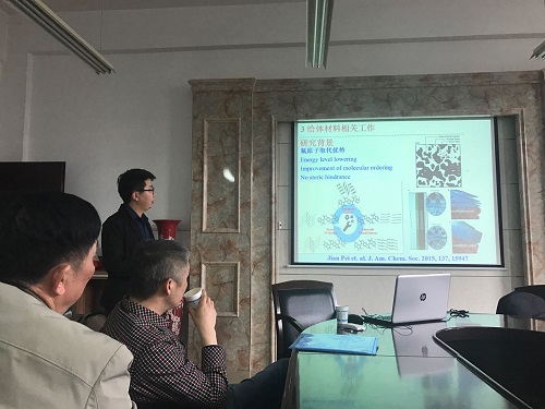 袁博士的报告题目为“高效太阳能电池的材料设计、合成与光伏性能研究”。有机太阳能电池是一种将太阳能转换为电能的新型电子器件,因其制备成本低、光电特性易调节、可制成半透明以及可大面积卷对卷印刷等优点,已成为目前研究的热点。衡量太阳能电池性能的主要指标是其能量转换效率。高效率有机太阳能电池仍然是目前研究的首要目标,也是实现其产业化的关键。