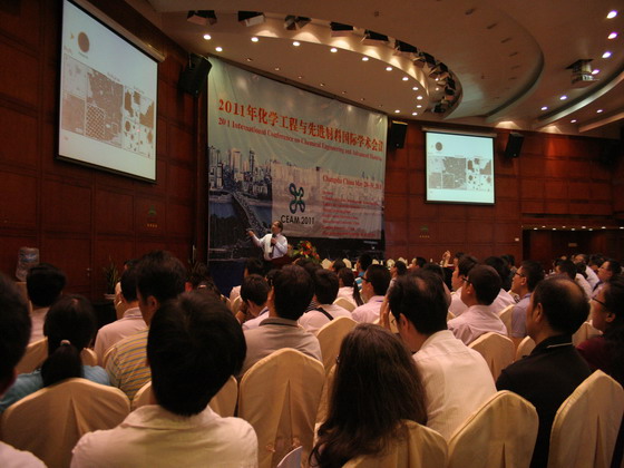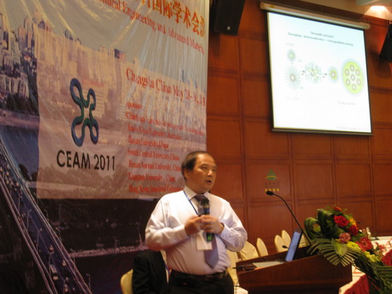 5月29日上午8:40,美国纽约州立大学(State University of New York at Binghamton,USA)钟传建教授应邀在威廉体育举办的2011年化学工程与先进材料国际学术会议(CEAM 2011)大会上做了题为《Nanoengineered Materials for Green Energy and Biomedical Applications》的主题报告(Keynote Speech)。报告会在长沙市五华大酒店湘江厅举行,威廉体育williamhill副校长付宏渊教授、威廉体育williamhill科技处处长刘永乐教授、澳大利亚詹姆斯库克大学(James Cook University, Australia)何英和教授、中科院长春应用化学研究所/威廉体育williamhill化学与生物工程学院院长曹学强教授、中科院大连化学物理研究所孙立贤教授、湖南师范大学化学化工学院院长尹笃林教授、湖南大学化学化工学院向建南教授、威廉体育williamhill化学与生物工程学院常务副院长杨道武教授、威廉体育williamhill化学与生物工程学院副院长曹忠教授等出席了报告会,共有来自美国、英国、德国、日本、中国等15个国家和地区的500多名化工和材料方面的专家学者参加了报告会。