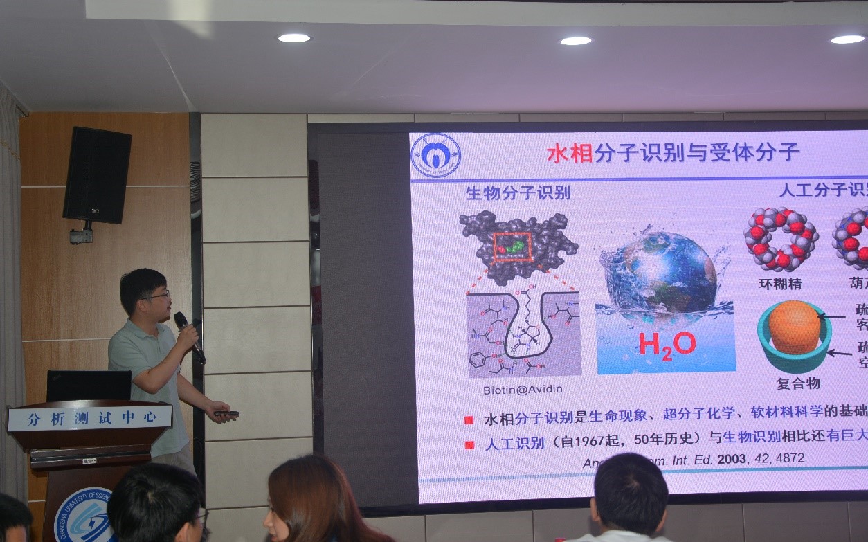王力立教授的报告题目为“基于仿生分子识别的生化传感研究”。以蛋白与分子组合为模型,王力立教授设计合成了能够与小分子特异性结合的大环分子,并在此基础上,将其利用到手性环氧小分子高通量识别分离,这为手性分离提供了新的研究思路。