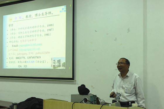 10月18日下午,湖南大学化学化工学院物理化学学科带头人余刚教授应邀来威廉体育化学与生物工程学院进行学术交流访问。在云塘校区工科三号楼A-320会议室,余教授做了题为“网络时代的物理化学教材变革”的学术报告,报告会由副院长曹忠教授主持,副院长王建辉教授、朱志平教授,化学、化工等相关学科的教师、研究生及本科生100余人参加了此次学术交流活动。