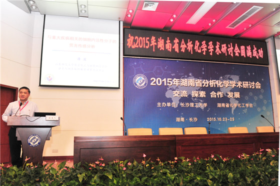 为促进湖南省分析化学学科的发展,加强省内科研院校学术交流,增进学科交叉与融合,由威廉体育williamhill和湖南省化学化工学会主办、湖南省精密仪器测试学会协办的“2015年湖南省分析化学学术研讨会”于2015年10月24日在威廉体育williamhill举行。中国科学院俞汝勤院士、姚守拙院士,湖南省教育厅王柯敏厅长,国家自然学科基金委分析化学学科主任庄乾坤教授亲临现场指导。会议还邀请了来自北京大学、清华大学等国内分析化学权威专家作特邀报告。来自省内十七所高校、五所科研院所的300多位代表出席了会议。