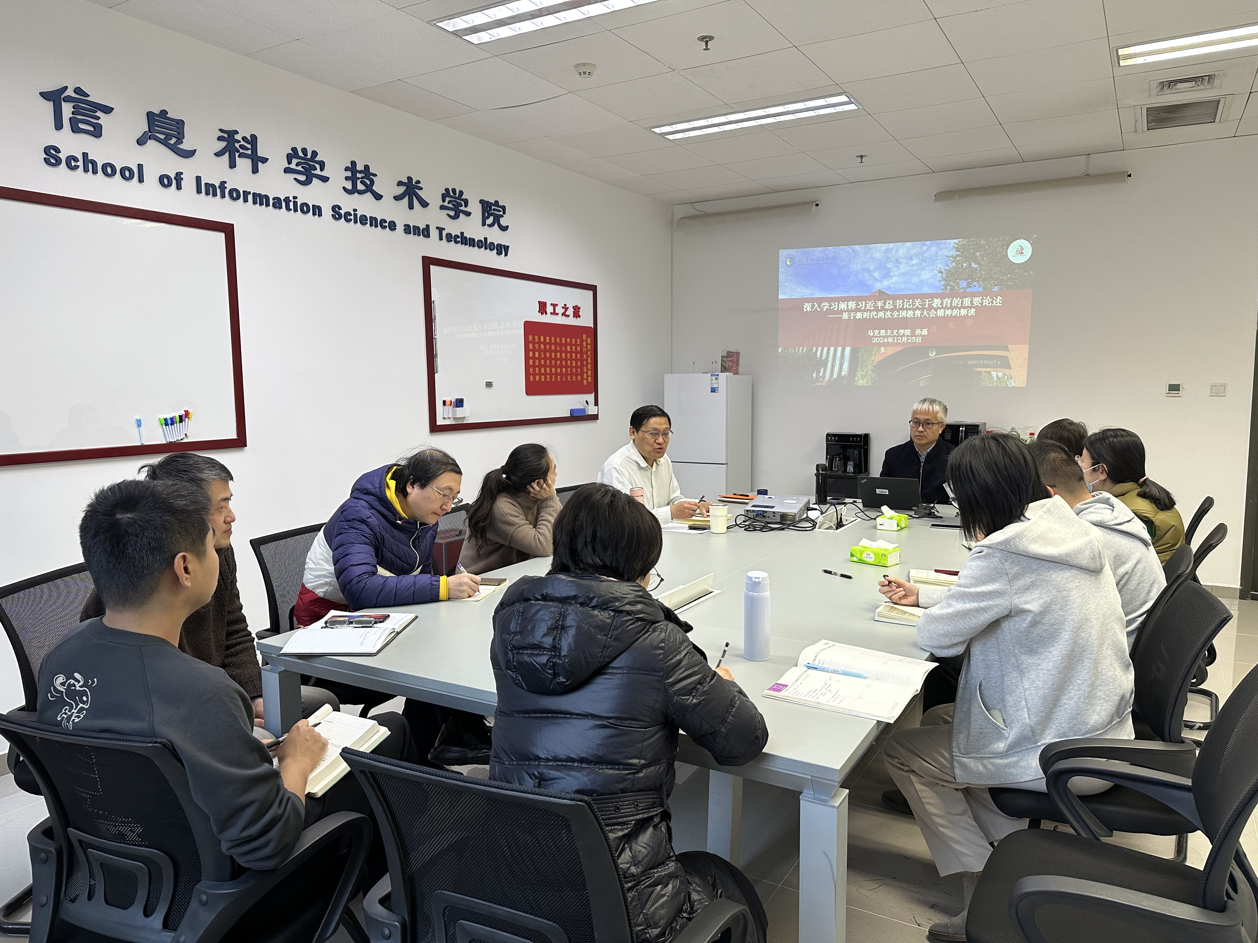 2024年12月25日上午,贝博bbet官网首页召开2024年度第十次全体教师集体学习,邀请马克思主义学院孙磊老师做《深入学习阐释习近平总书记关于教育的重要论述——基于新时代两次全国教育大会精神的解读》报告,学习会由学院党总支书记梁野主持,全体教职工参加学习会。孙磊老师首先对比分析了2018年和2024年两次全国教育大会的篇章结构与内容,细致阐述了两次大会的异同点,详细解读了两次大会的核心主题“坚持中国特色社会主义教育发展道路 ...