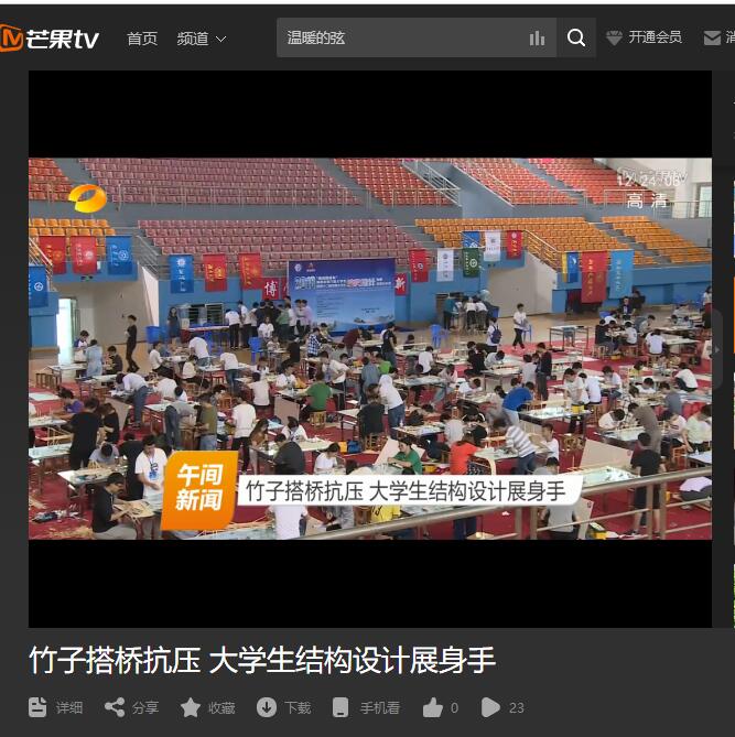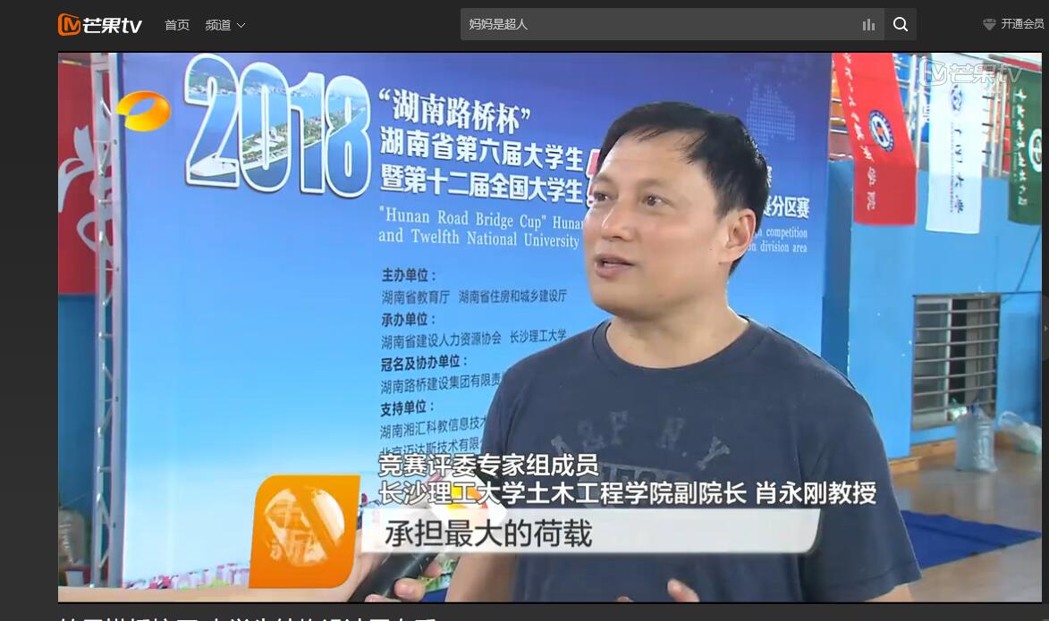 湖南卫视5月14日午间新闻对5月11—13日在威廉体育举行的“湖南路桥杯”第六届湖南省大学生结构设计竞赛暨第十二届全国大学生结构设计分赛区竞赛进行了报道。